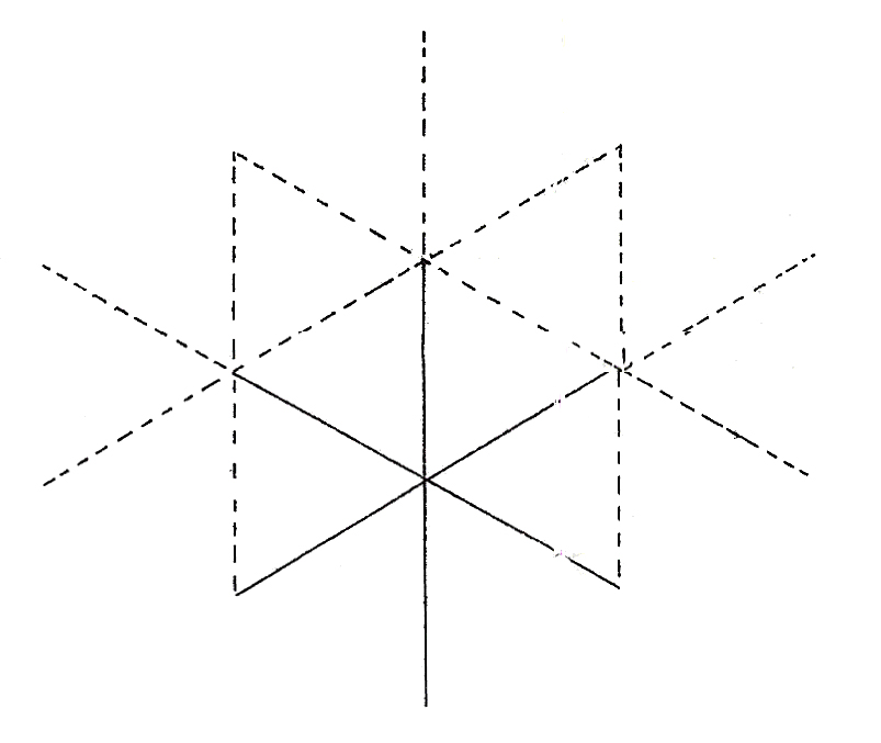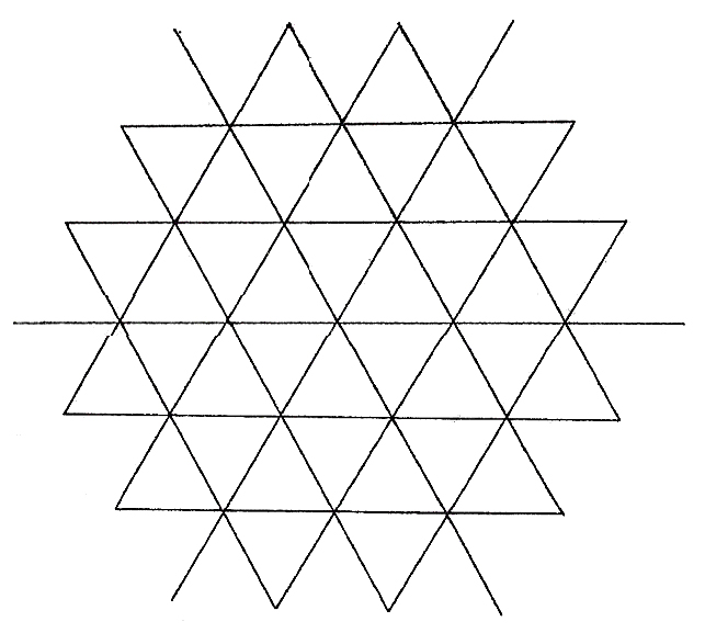 Note! In the case of the thirty-one zone pattern projected on the octahedron, four of the faces have a left-handed pattern. The drawing and the photo are of patterns with different handedness. ↩︎